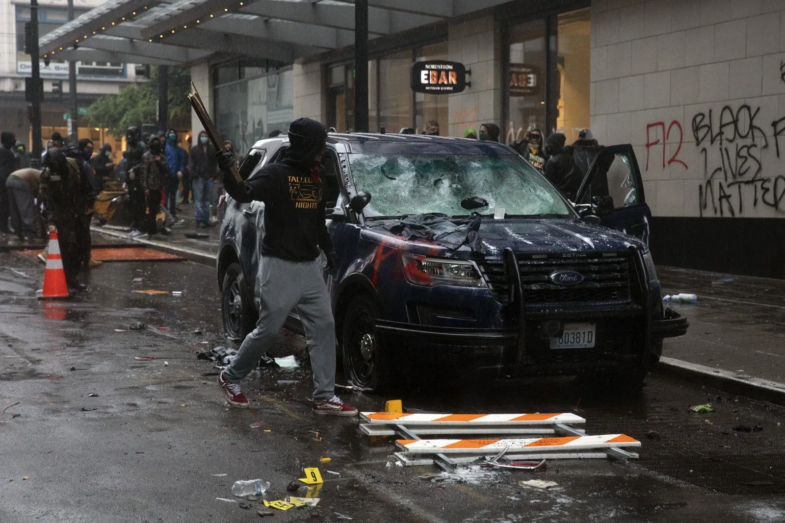 Your pictures show nothing that has not happened in this nation many times before, which have always been handled by legitimate cops, not goon squads illegally dispatched from out of state by a criminal. We've seen similar behavior after college sports games.
