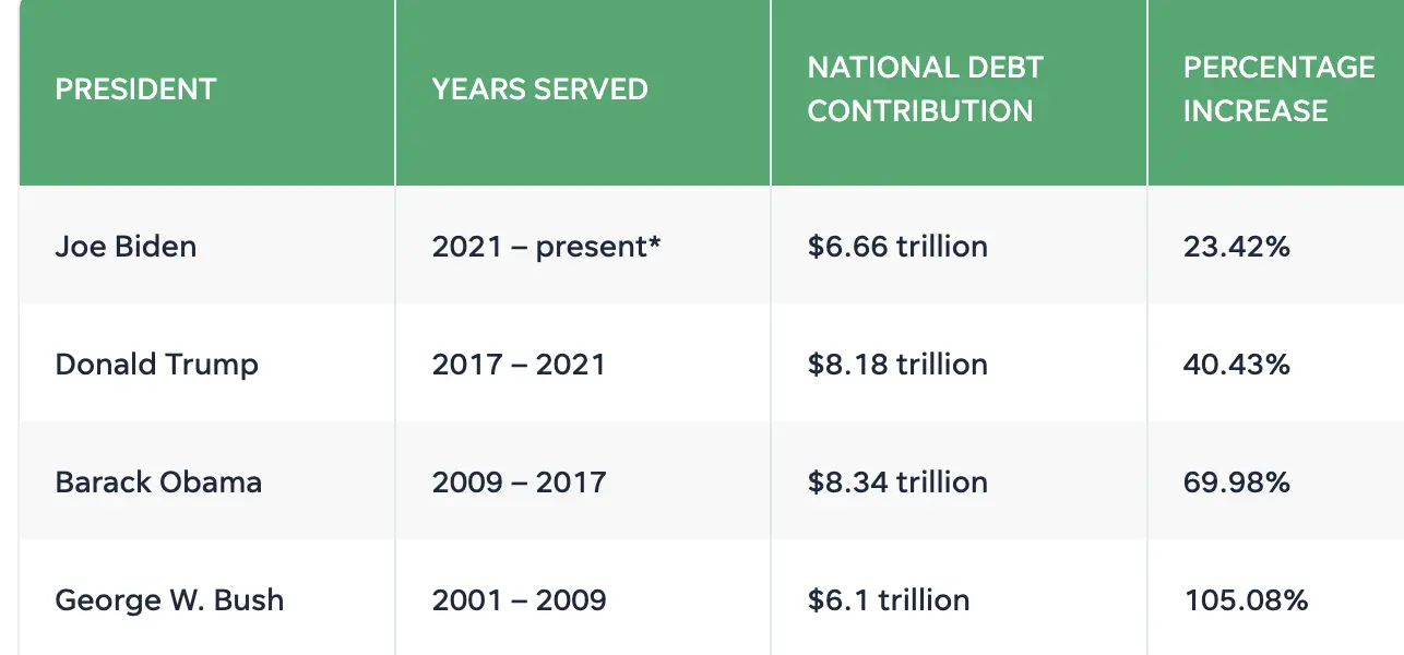 Trump had the Covid shutdown to deal with. Biden also added $8T to the debt with no excuse, he paid for food and housing for 12,000,000 illegals. Trump is putting the US back on a sound fiscal track, might even balance the budget.