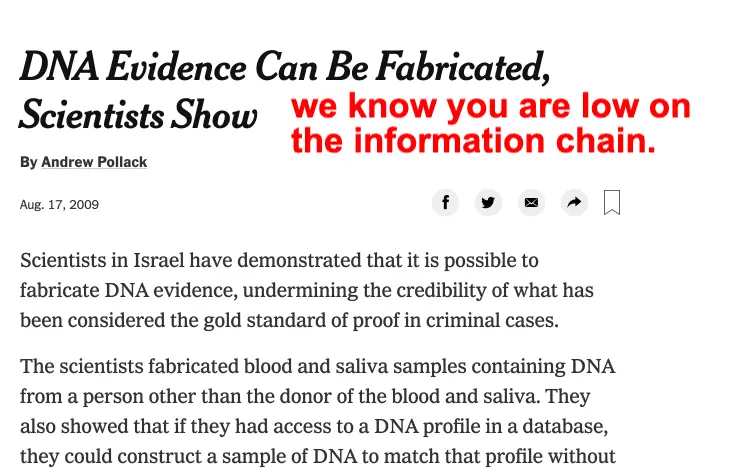 Well, DNA wouldn't lie, though, would it? Maybe she was so grossed out she never wanted to look at that dress again. But save it? That's one messy closet.