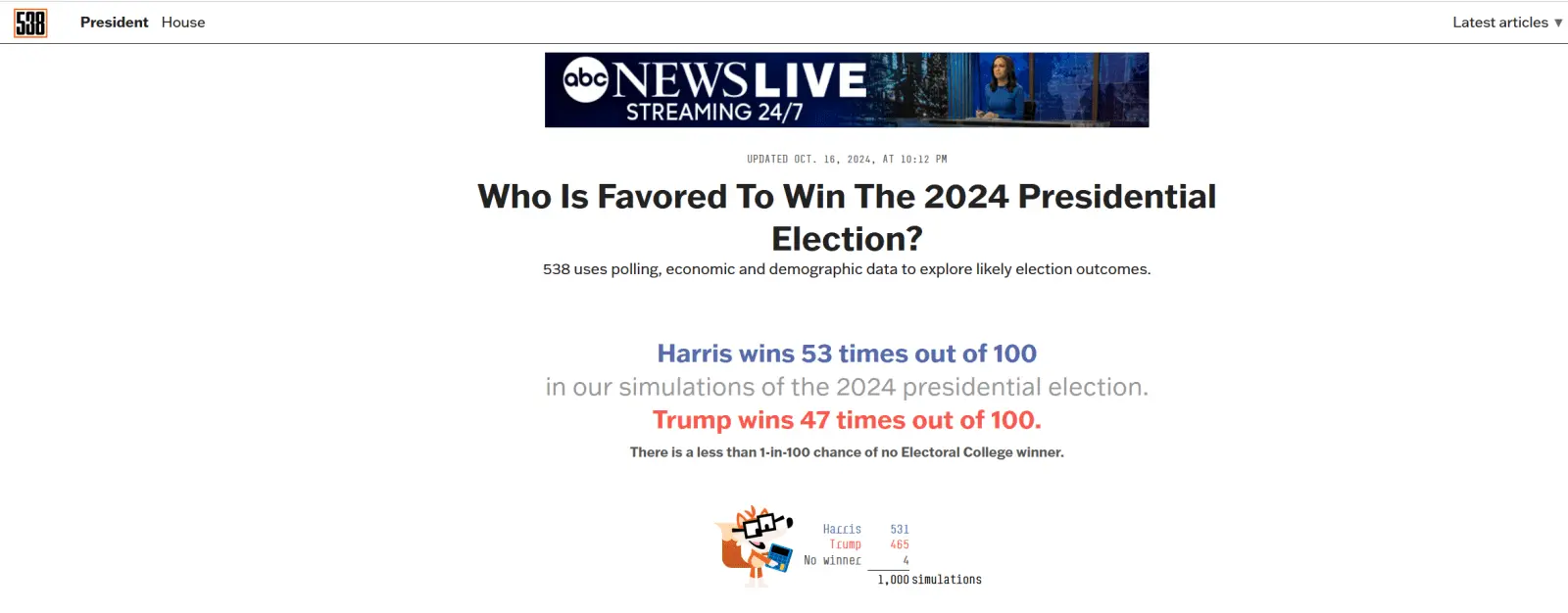 I think it is closer than that. We may a electoral minority president with Harris.
