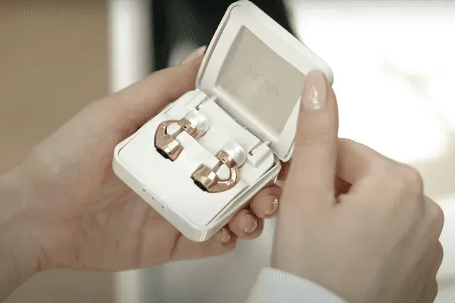 Nova’s audio earrings are made with real pearls, and have built-in speakers that transmit audio up and into your ear.