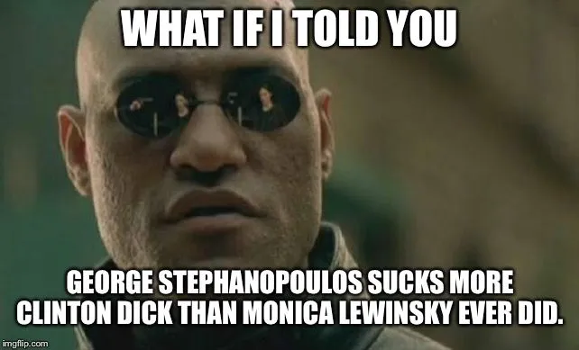 Their definition of democracy will destroy this country. The amount of people who believe these assholes is dropping. This is the cult.George Goebbels, I mean Stephanopoulos taking his marching orders and being public about it?