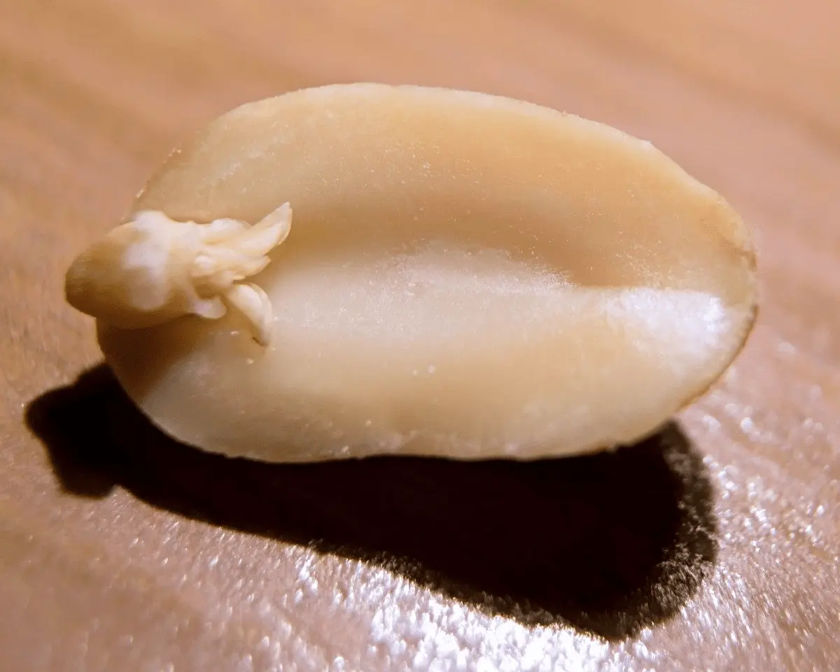 The same is true of the seeds of nearly every seed-bearing plant—that the seed does, in fact, contain an immature form of the very plant that, if given the condition to do so, will grow into a mature plant. It's very easy to see in a peanut, and at least twice, I've posted this picture, showing the immature peanut plant inside of a peanut.