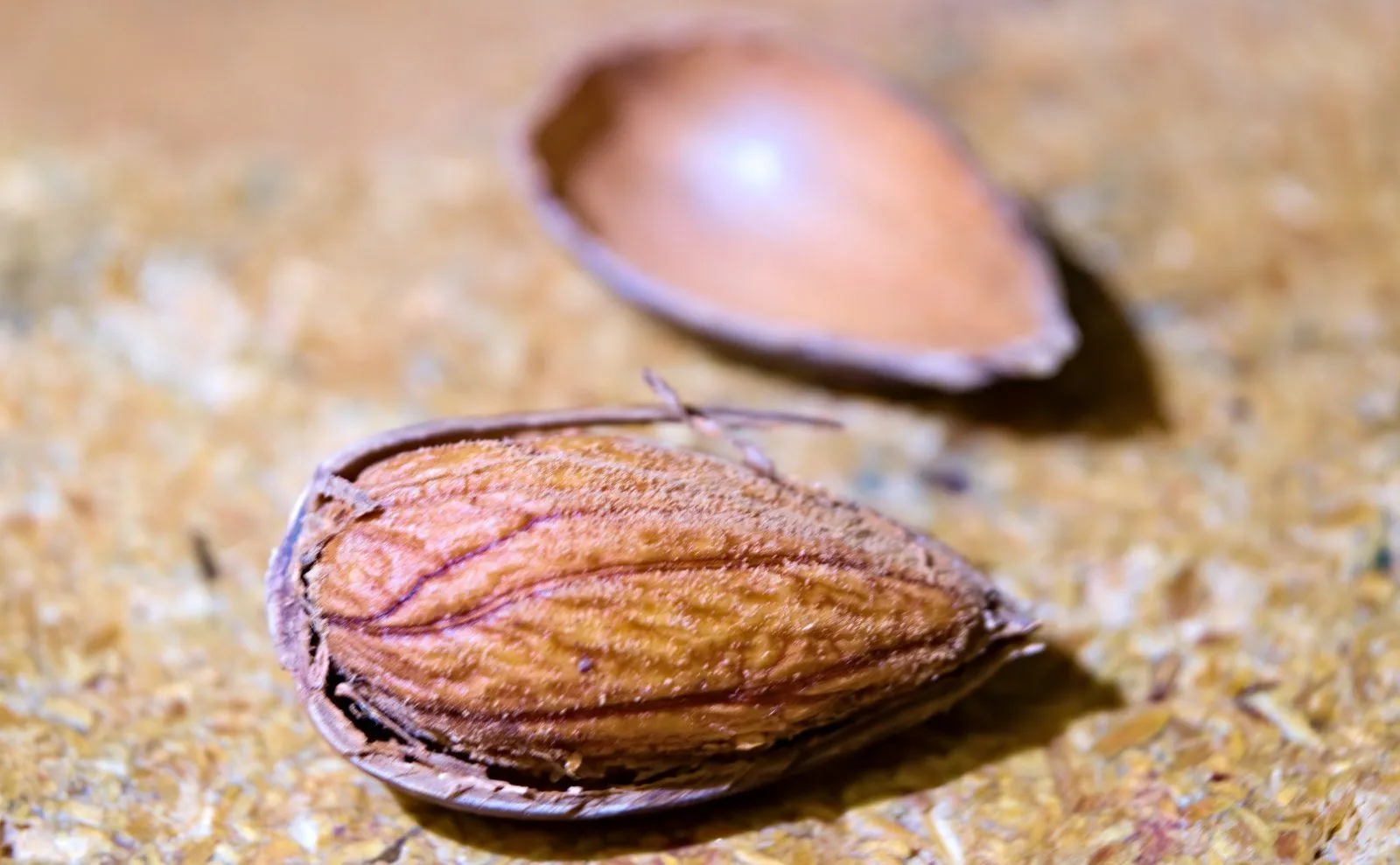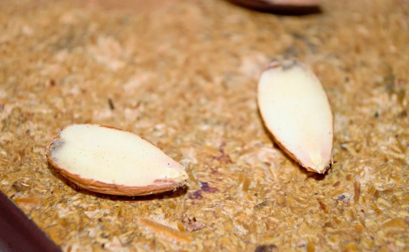 The shell is considerably tougher than that of a peanut. I used a cutting disc on my Dremel to cut the shell open and remove it, exposing the cotyledons…