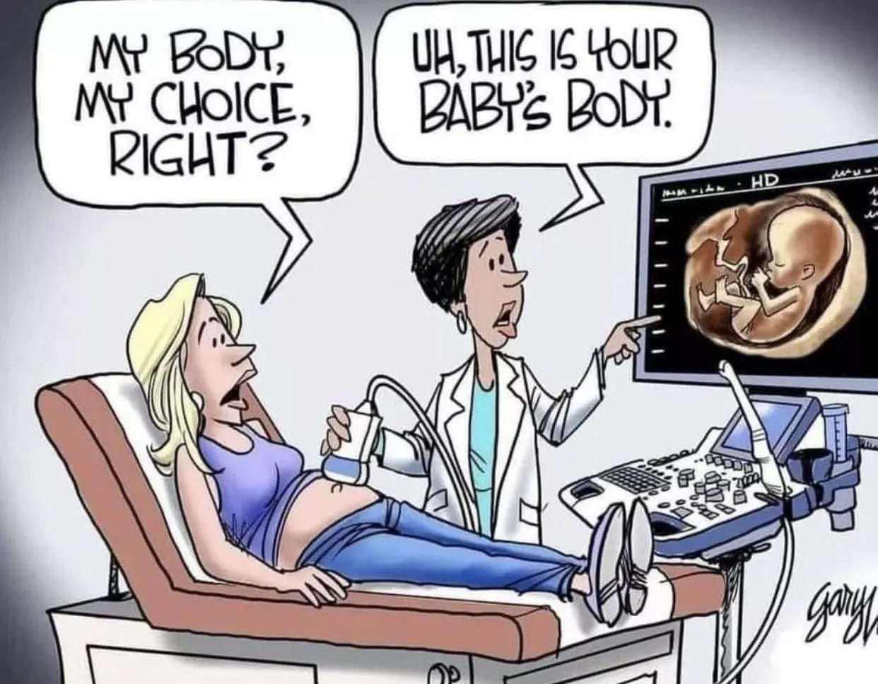 The fetus is using the woman's body without permission.I know one thing. The baby in the woman’s body is NOT her. The baby resides in her. Someday this will become clear but not while the left are allowed to kill it even after drawing the first breath.
