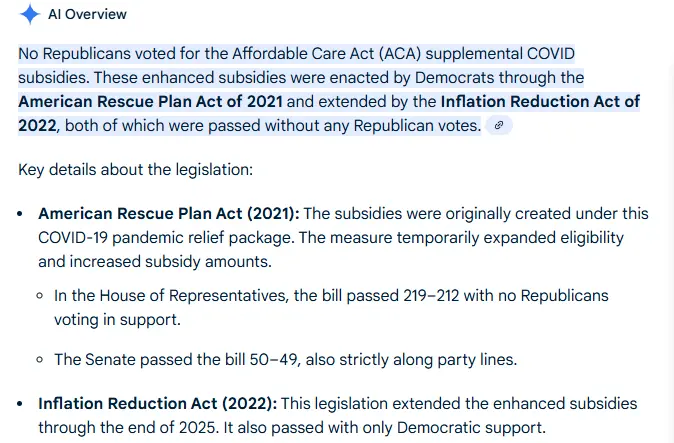 Temporary subsidies for COVID were added to the existing subsidies in 2021, again voted for by not a single Republican.