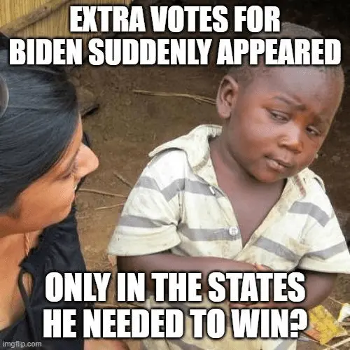 No proof?? Kinda funny that 130,000 ballots show up at closing time and every one is for Biden?? Oh and lets not forget that none of the others running on the Dem ticket got elected. If they had going by the number Congress would be blue.
