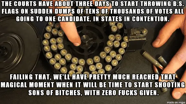 There has been accusations of fraud in this Election. For fraud to change this election it would have to be at a pretty massive and co-ordinated way.