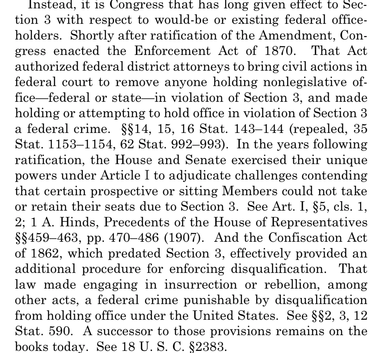 I’m right.That's interesting, but 18 U.S.C., 2383 was passed in 1948 That's the congressional legislative enforcement mechanism of section 3. The SOTUS opinion even tells you that. You should read it.