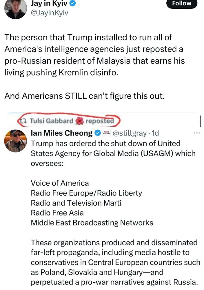 Lol.It is and has been the voice of free a speech AMERICA and counters the propaganda of authoritarian regimes, which Trump seems to emulate. Free speech means ALL views and not only Republicans OR Democrats or Putin lovers.