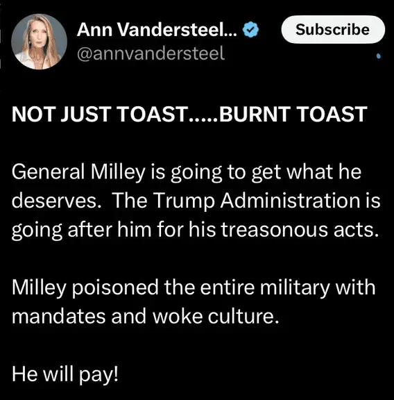 Awesome! I've been wanting Milley Vanilley to be fried ever since he pledged his allegiance to Xi Jinping. General Patton would have shot his ass.