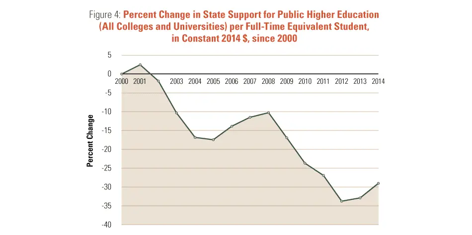 Decline in support for state colleges.