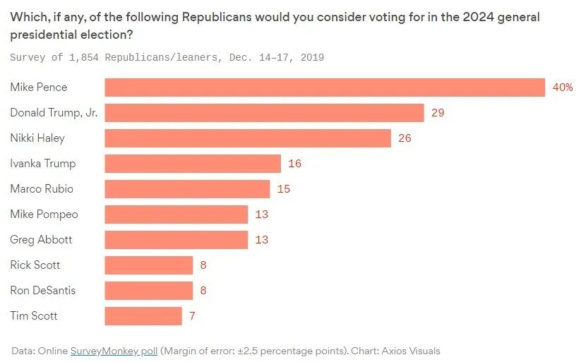 "As you can see, Vice President Mike Pence tops the list, followed by the guy who just posted this picture, featuring an apparent line drawing of Hillary Clinton behind bars and other controversial symbology — “I honestly think Don Jr. or Ivanka will be the nominee in 2024,” Wilson said in the interview. 'Because the party doesn’t care about any of the issues that used to drive the party. Now they care about Trump' a republican strategist said."