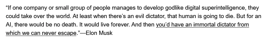 “Within the next 10 years, many researchers expect to achieve superhuman Artificial General Intelligence (AGI). Leading AI labs (OpenAI, Google DeepMind, and Anthropic) state[1][2] the creation of a superhuman AGI as their explicit objective.