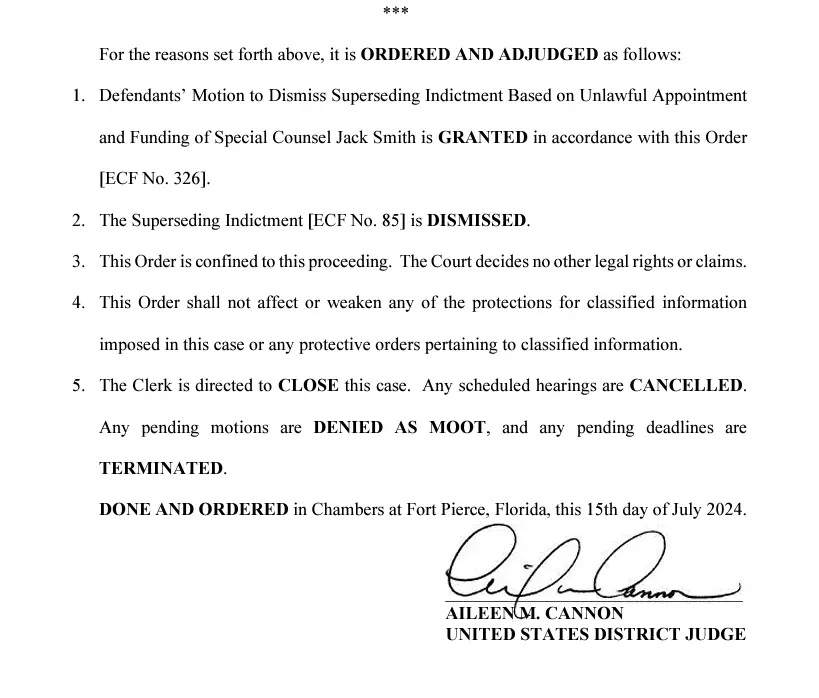 Cannon dismissed case, it didn't end in her court because Smith withdrew.