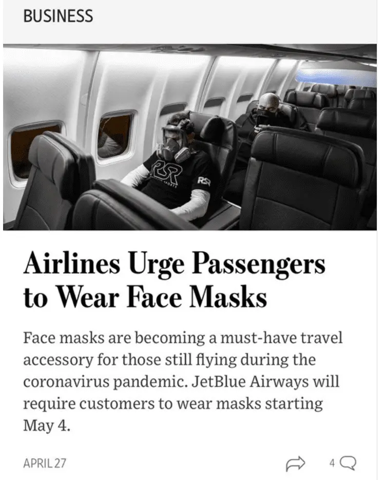 Face masks are becoming a must-have travel accessory for those still flying during the coronavirus pandemic. JetBlue Airways will require customers to wear masks starting May 4.