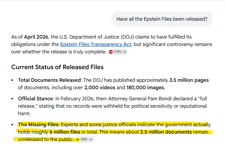 Sure.Congressional members have gone to the source of the documents and verified that accused friends of Trump have been redacted and files remain unreleased that implicate them. They have read them out loud. This whole thing is a coverup.