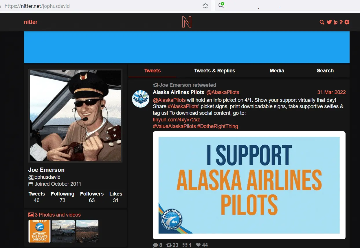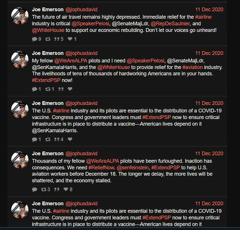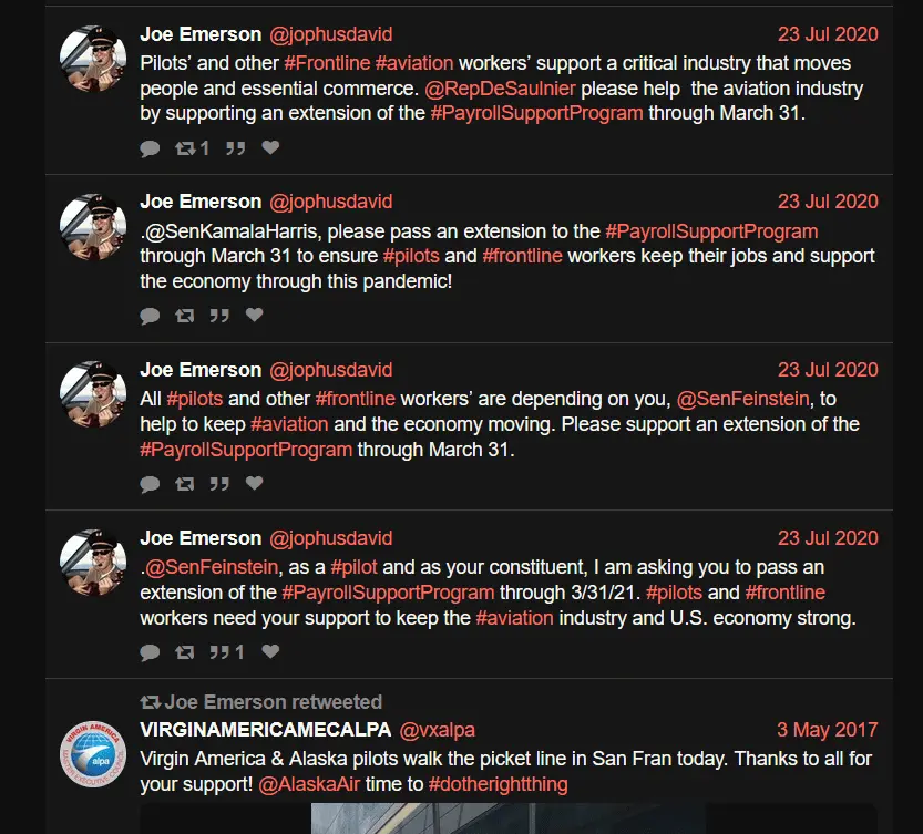 His Twitter page is rather "interesting." He seems to be a pro-union and a strong proponent of government financial support of the airlines. Here it is from Nitter: