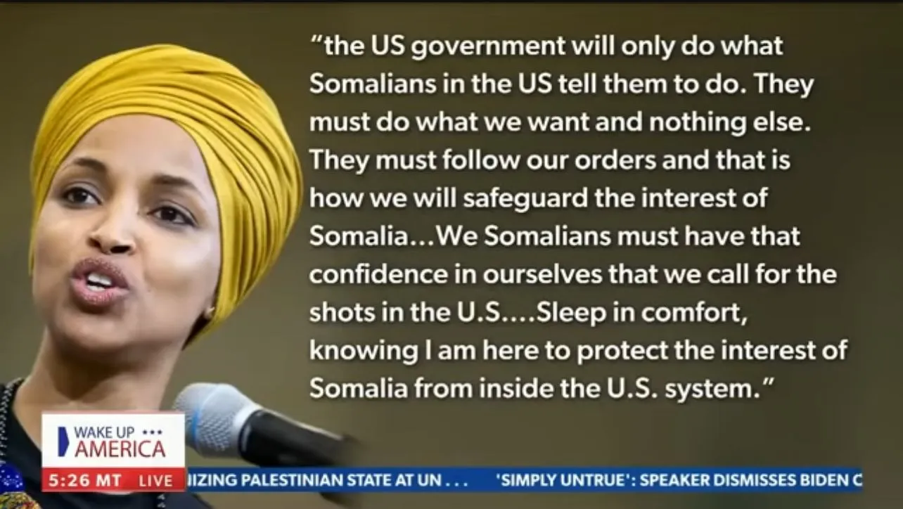 LOL, dude she is in import who hates the USA, constantly states we are a shit hole when her home country is one of the biggest gangland shitholes on the planet and then demands the US help Somalia? she is nobody to make demands but if she wants to fight for her home country......get the **** out of here with your brother you have sex with [sick!] and to do something about it.A person is not un American because they don't recite the right-wing white male opinion verbatim. What people like you need to do is shut up and live in your fantasy of America while the grown-ups deal with the truth so this country can improve.