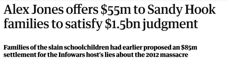 Alex Jones offers $55m to Sandy Hook families to satisfy $1.5bn judgment