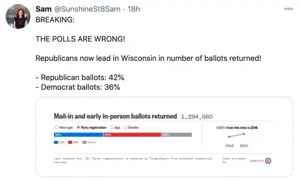 “The lead that Biden is building with the early votes looks like it’s larger than what the Trump voters can compensate for by showing up on Election Day,”