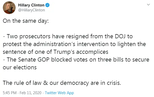 "Not your president" Hillary Clinton saying that rule of law is in crisis.