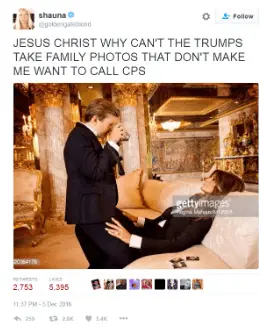 2. I understand that sexually charged pictures are a trump staple, what with Melania's lesbian porn layouts, and Ivanka's exposed breast escapades, as well as that lap dance photo of your father and sister, but do you ever feel awkward when taking suggestive pictures of your mother?