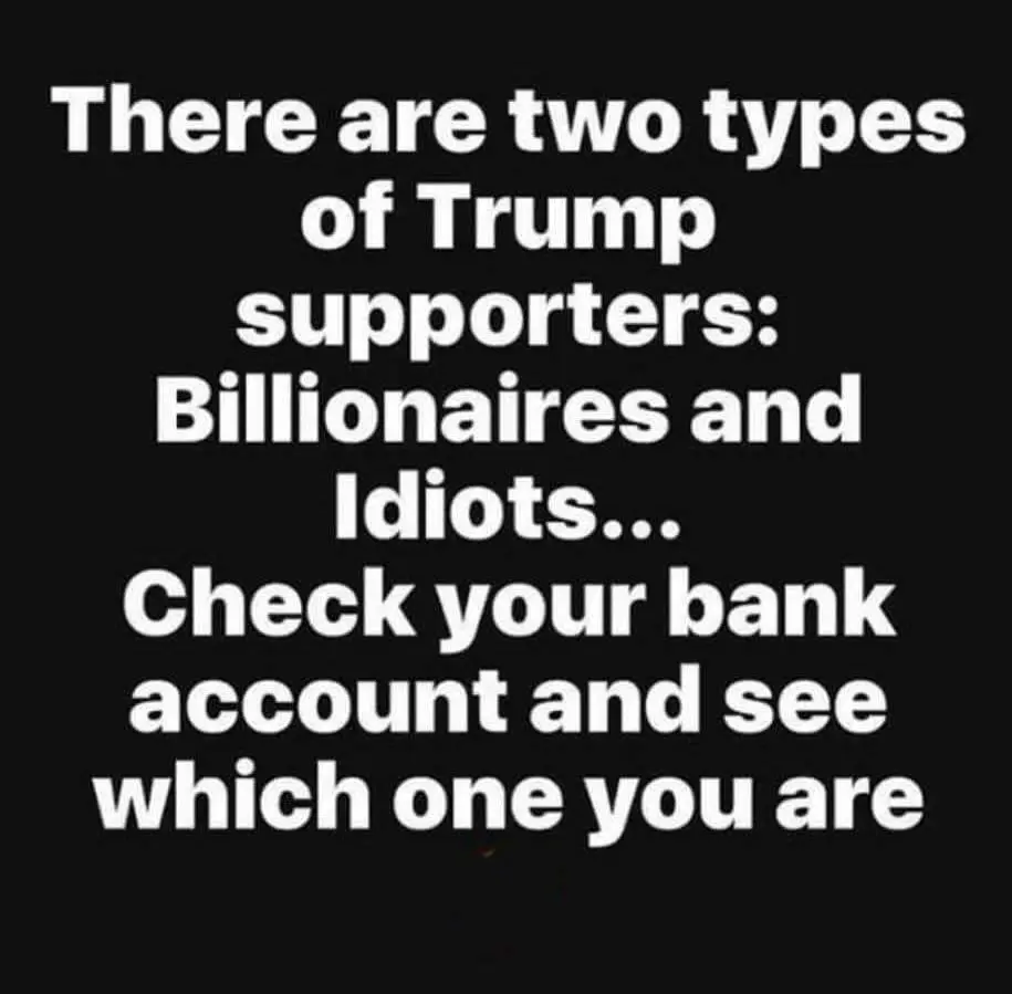 Yeah... that's right, slick... keep callin' 'em stupid...The dupes go for character assassination and ridiculous promises rather than looking at the actual policies they're for...cutting Medicaid, blocking background checks blocking minimum wage hike and pollution remedies...etc etc