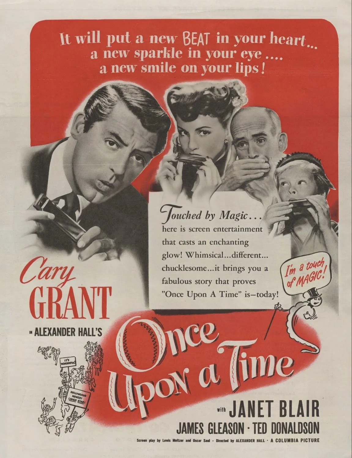One of Grant's lesser known films and for good reasons. I saw this over 50 years ago. The premise for movie is pretty silly. I doubt that even Grant could make this a money maker.I finally watched Once Upon A Time. Hard to say something about this. Premise of the story is a big theater boss is flopping and losing his funders, then discovers a boy with a dancing caterpillar and tries to turn the act into a sensation. It's amusing and funny because how stupid it is and it's hard to believe that even a kid would get into a movie like this because it's so dumb.
