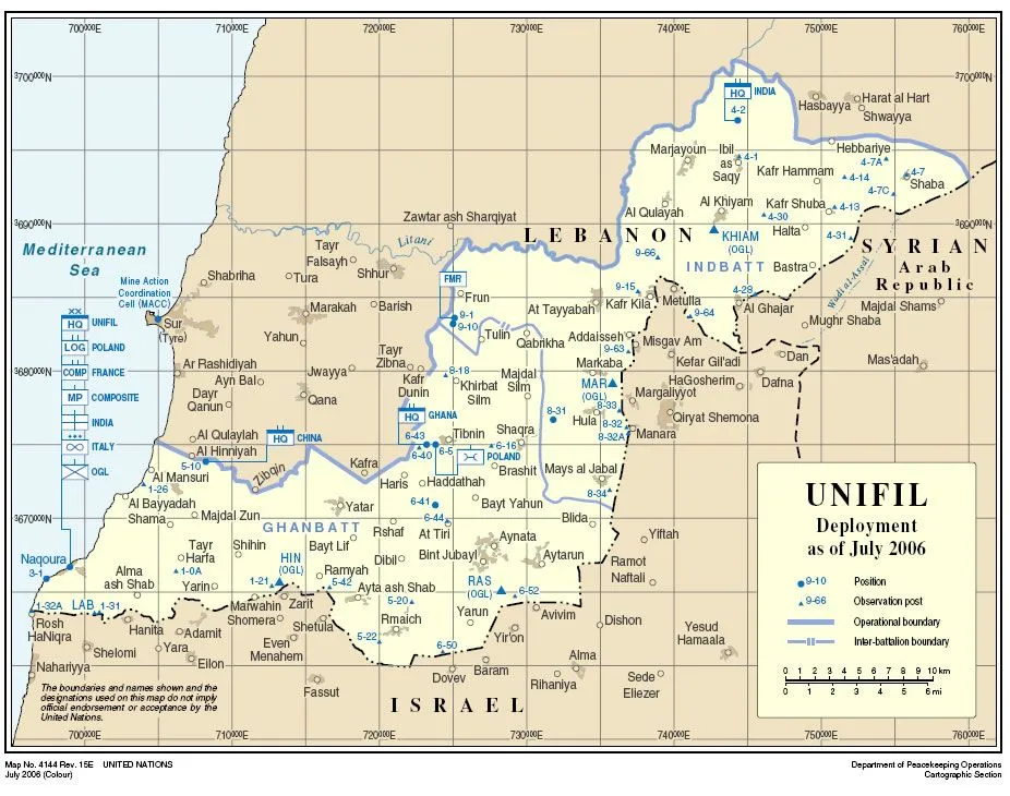 First, since Security Council resolution 425 (1978), there has been a very firm and strict respect for the territorial integrity, sovereignty and political independence of Lebanon within its internationally recognized boundaries.” The original “international boundary between Israel and Lebanon was established pursuant to the 1923 Agreement between France and Great Britain. Today, this boundary, with minor changes, has been maintained and was last reinforced by way of A/54/914 S/2000/564 12 June 2000 which the UNIFIL Peacekeepers Teams maintain today.