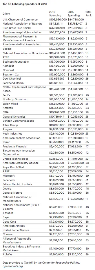 Oddly enough (as reported by The Hill - Washington a Political Observer Platform and journal), AIPAC was not even in the in the Top 50 Lobbying Spenders in the 2016 Election: