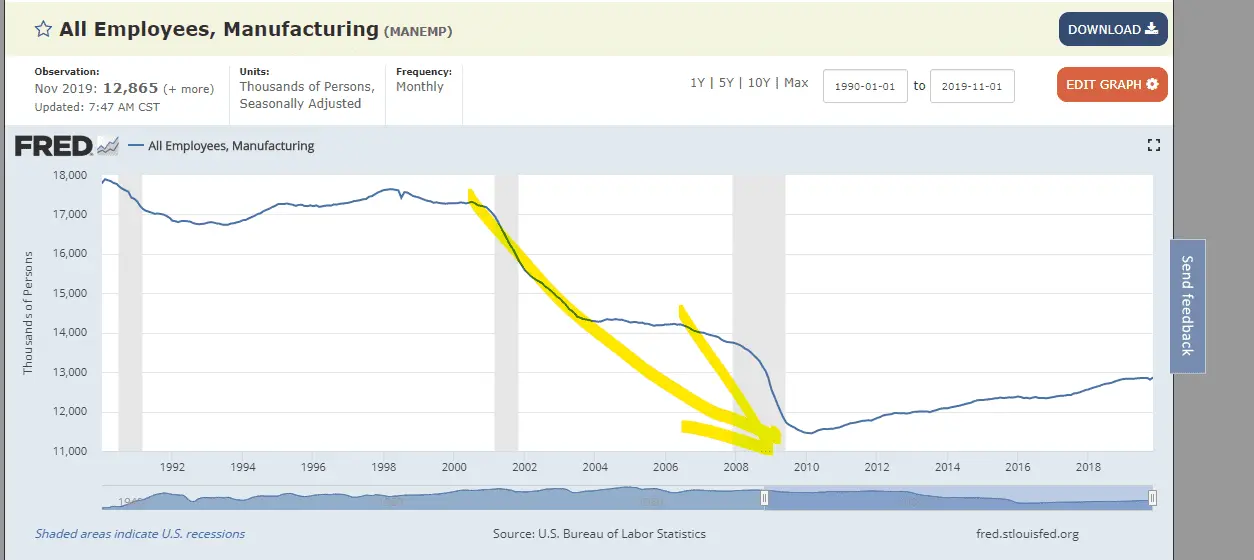 Well we do. As stated, manufacturing has not disappeared. In fact, it was a record year 2018, in manufacturing. If we rounded up the entire manufacturing sector of the US into a separate country, it was have a GDP of $1.9 Trillion, or be 8th largest economy in the world.