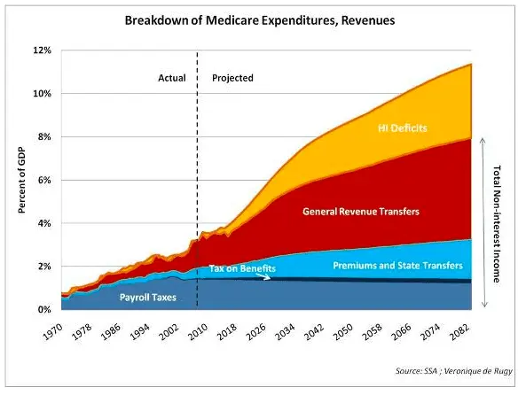 Ray, I don't believe your last statement is correct. Total Medicare expenditures in 2018 were $740.6 billion, and total income for for the trust funds was $755.7 billion, which consisted of $745.9 billion in non-interest income and $9.8 billion in interest earnings. Assets held in special issue U.S. Treasury securities increased by $15.1 billion to $304.7 billion. If by 2026, there is no change in the law, the Medicare Trust Funds will be depleted to a point where it will become a budget item.