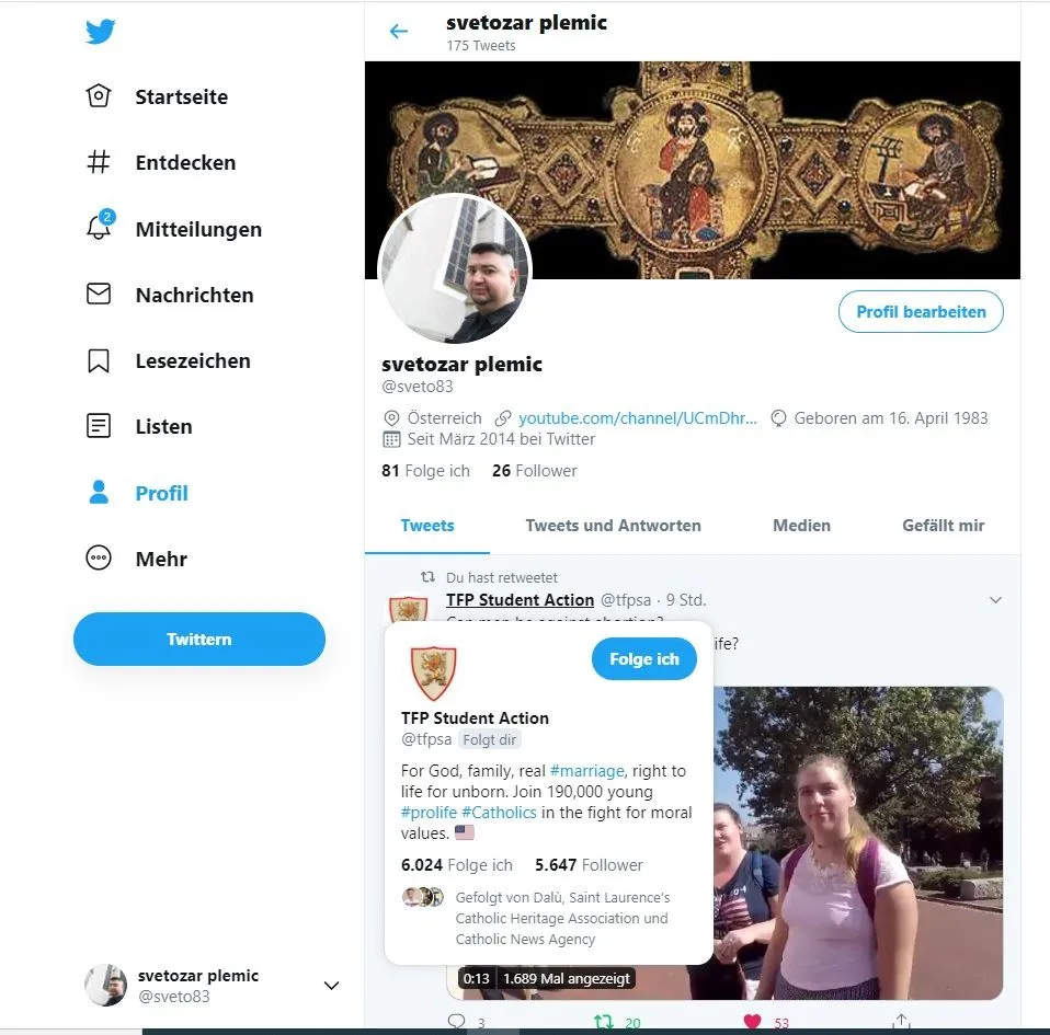 Their student organisation also follows me on Twitter.
