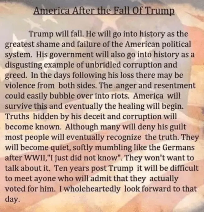 Bottom line, I think the key to recovery will be whether or not the worst happens -- if the "Unified Reich" is successful in effectively destroying our voting/electoral system. This would happen via voting law changes and structural changes, particularly at state level -- and we've already seen some of this. If they try this, and if they can pull this off during Trump's four years, all bets are off. That's when this country goes fully down the path of Europe, 90 years ago.
