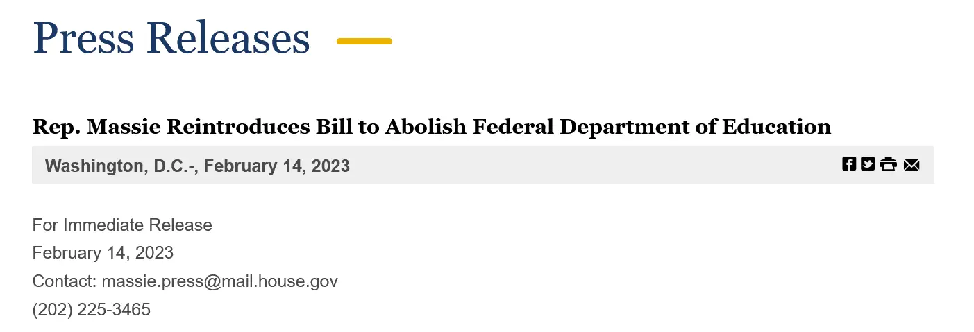 Rep. Massie Reintroduces Bill to Abolish Federal Department of Education