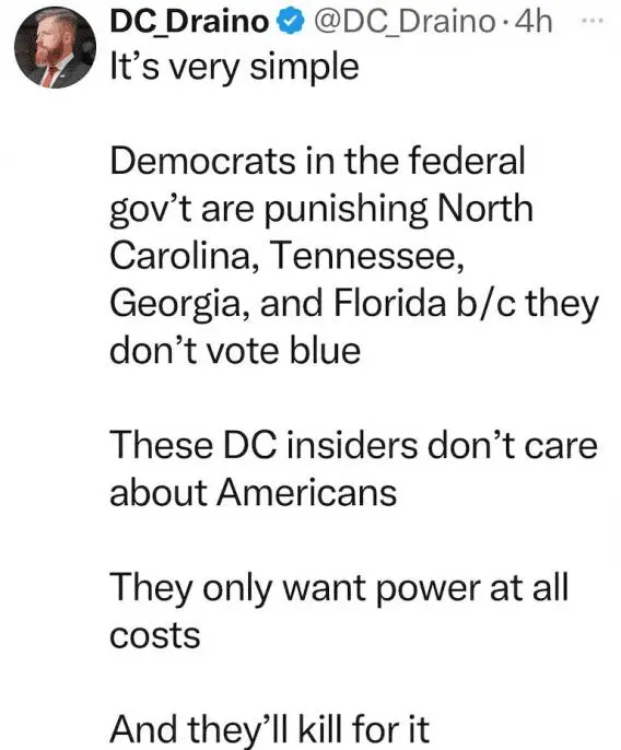 It's totally unconscionable that the Biden Administration, and his fellow Neo-Marxist travelers and their weaponzied agencies refuse to assist the victims of Hurricane Helene..