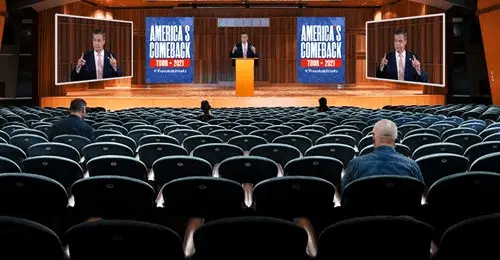 He is debating ideas in the public forum