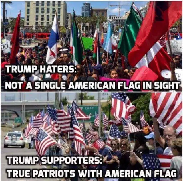 I understand .... but there is no indication (other than the caption) in either photo to prove they are pro- or anti- Trump or Hillary. In fact, the first photo is difficult to even see if it's in the US. That's why I asked you for verification. I don't really believe either of them is genuine.I don't know I wasn't there, but look at the protesters against Trump and see how many American flags there are.I have a feeling those photos are not what they say they are. Are they?