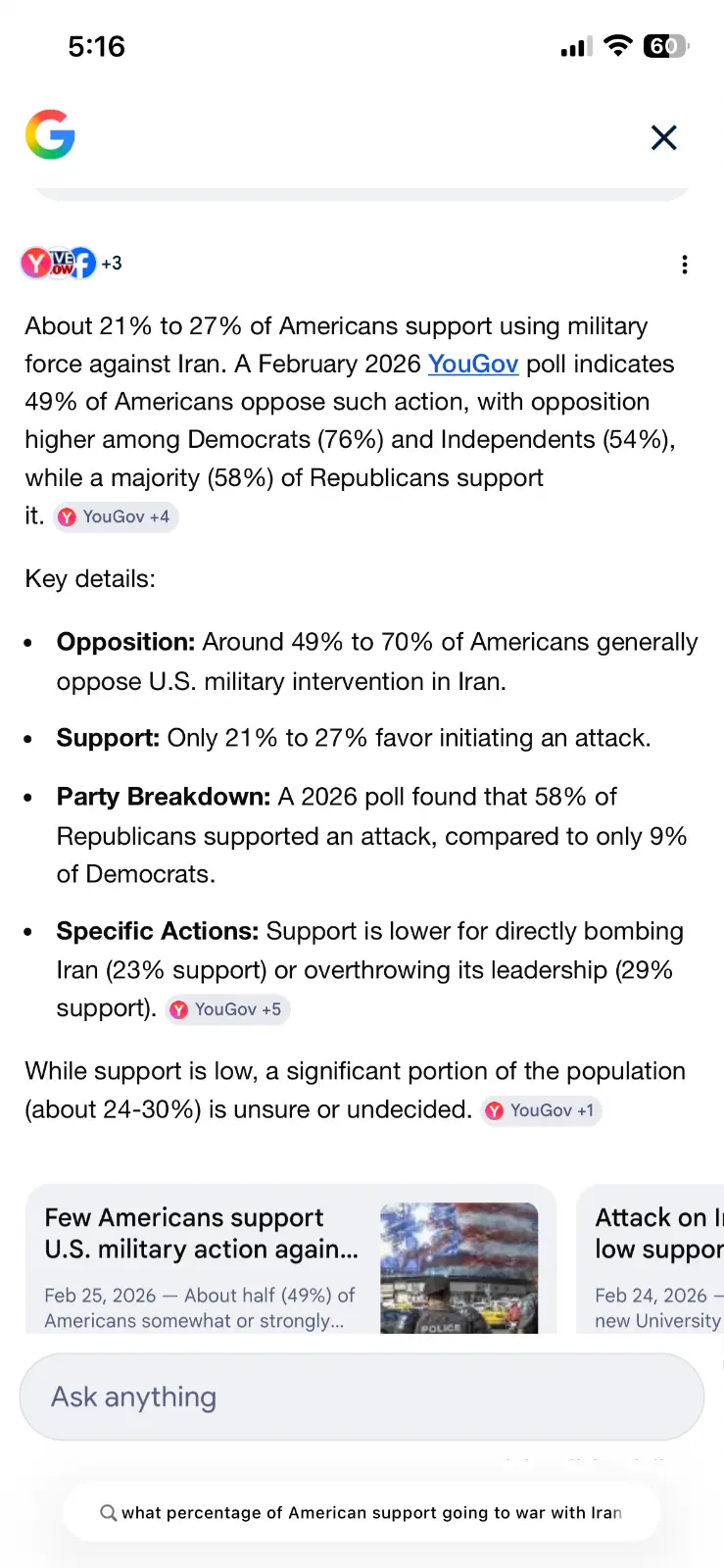 Trump is going against the Will of the American people with his attack on Iran. This is something that a small minority of American support. The boomer Zionists if you will. The key would be how independents look at this and most independents do not support war with Iran. Huge numbers of young Christian conservatives oppose war with Iran Which is good news for the American future.