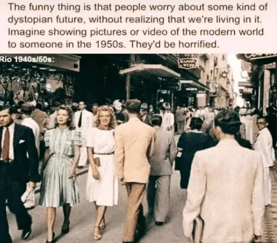 The 50's was a celebration of American achievement, mainly our contributions to winning WW2. From a Biblical perspective it was the pinnacle of power and influence of the 'great' nation promised to the descendants of Joseph. From the 'pinnacle' there is only direction...downward.Except Blacks, gays, minorities, the Korean War, the Red Scare etc.