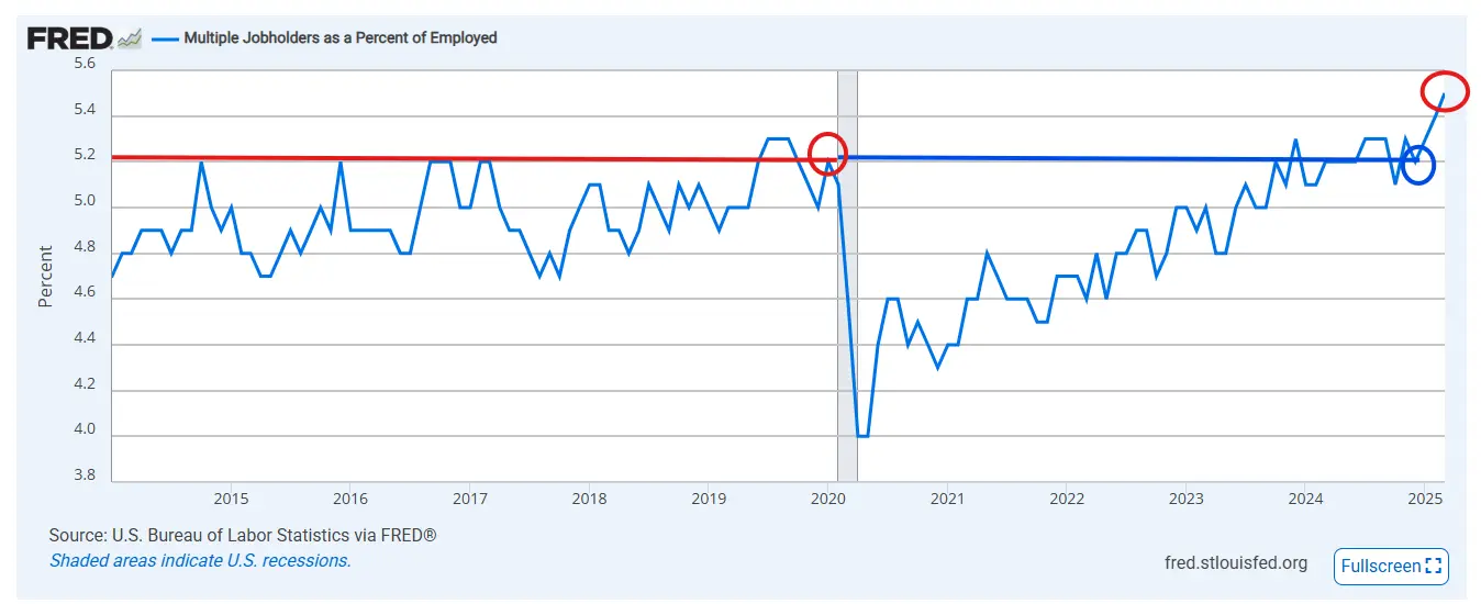 I am so tired of all the winning! I remember how much the right was concerned about the lower numbers under Biden of multiple job holders so I cant imagine the pain they are feeling now about the economy as it has become even worse for working Americans.