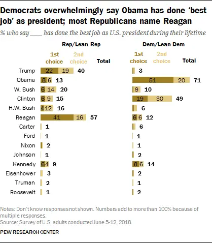 A Pew Research poll released yesterday says that most Americans rank former President Barack Obama as the best president of their lifetimes.
