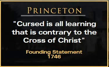 Princeton's founding statement of 1746 was Cursed is all Learning that is contrary to the Cross of Christ.