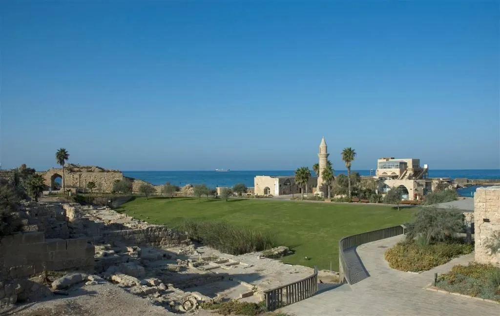 . . . was once the centerpiece of Herod’s palace, the nearly Olympic-sized swimming pool. The rectangular pool measures 115 feet long, 59 feet wide and at least 8 feet deep. Water channels leading into the pool from the shore have led excavators to surmise that the pool, though surrounded on three sides by the Mediterranean, had been filled by fresh water. If they are correct, the pool is further indication that Herod thrived on building in the face of natural obstacles.