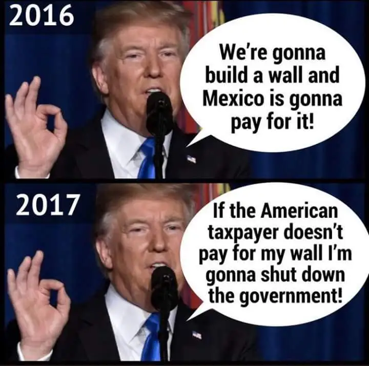 Now "The Donald" is threatening to shut down the government if the American taxpayer doesn't pay for it. Jeez Louise...This guy changes his stories faster than his underwear.