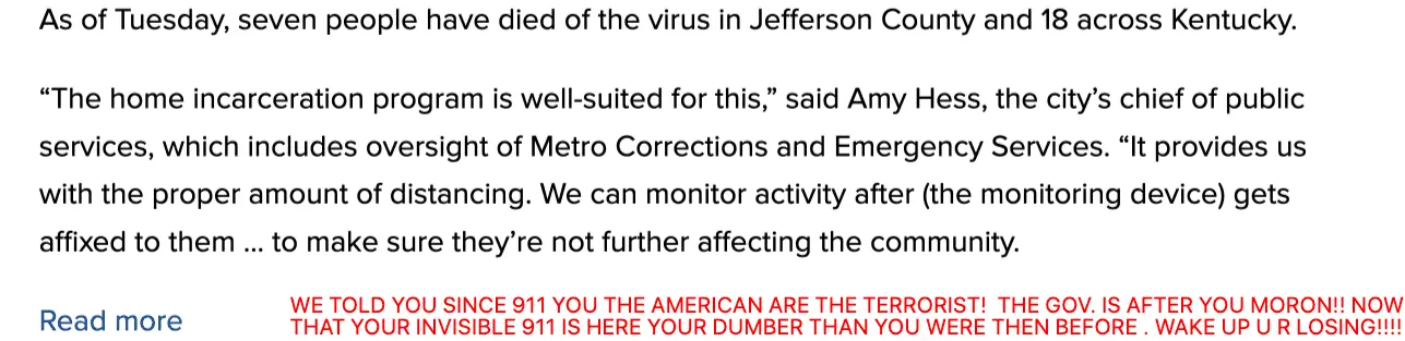 Well, pinheads here jumped all over my opinion, saying that these people are obviously bad and wearing the monitors increases public safety. So, I took the position of Devil's advocate. What's to say the next dozen people in Kentucky who are diagnosed with Covid don't also venture out amongst the masses? It would be proactive to put the ankle bracelets on them to know if and when they venture outside their homes. That would most certainly help protect the public, especially since we have no idea if these people will be prone to ignore medical advice (which, by the way, isn't a crime).