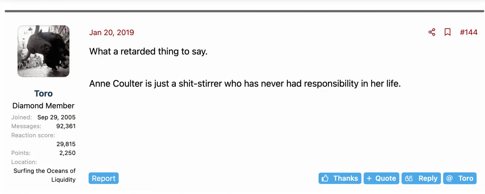 So now Toro is a fan of Ann Couter....heh: