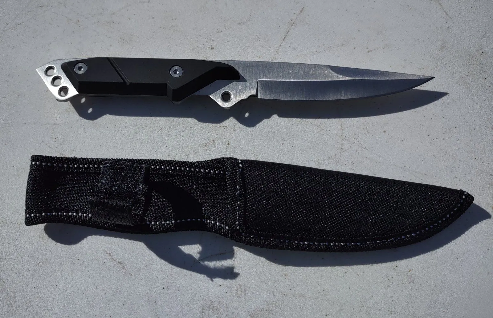 Even the sheath is nice. Probably going to use the holes to sew it right into one of my boots.