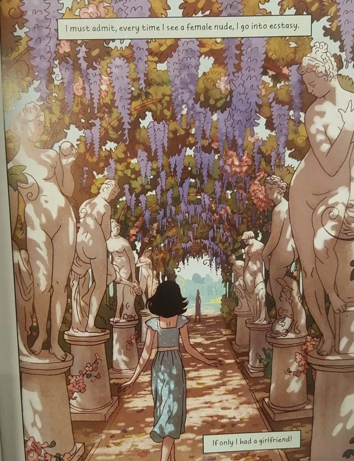 ---It contains illustrations of Frank walking among female nude statues that were "sexually explicit,"---